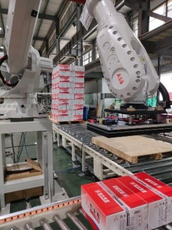 Volgens veel projectervaringen blijkt dat de palletiserende robot op de werkelijke projectlocatie, indien de lay-out redelijk en correct is,het kan gemakkelijk de bovengenoemde palletverwerkingsefficiëntie bereiken of zelfs overtreffen, als een palletiserende robot meer dan twee productielijnen en meerdere palletiseringsstations omvat, zal de algehele palletiseringsdoeltreffendheid afnemen,en de multi-station palletizing zal toenemen als gevolg van de reis van de robotDaarom wordt de tijd van de enkele cyclus langer, waardoor de algehele palletiseringsefficiëntie afneemt.